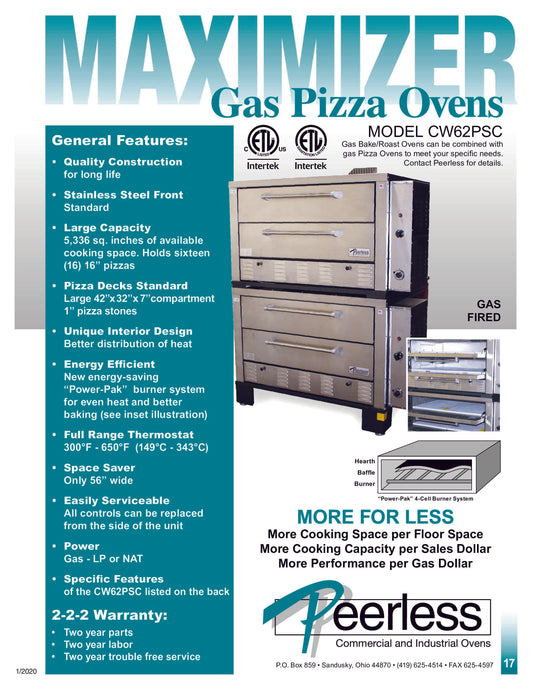 Peerless CW62PSC Double Stack Gas Deck Oven