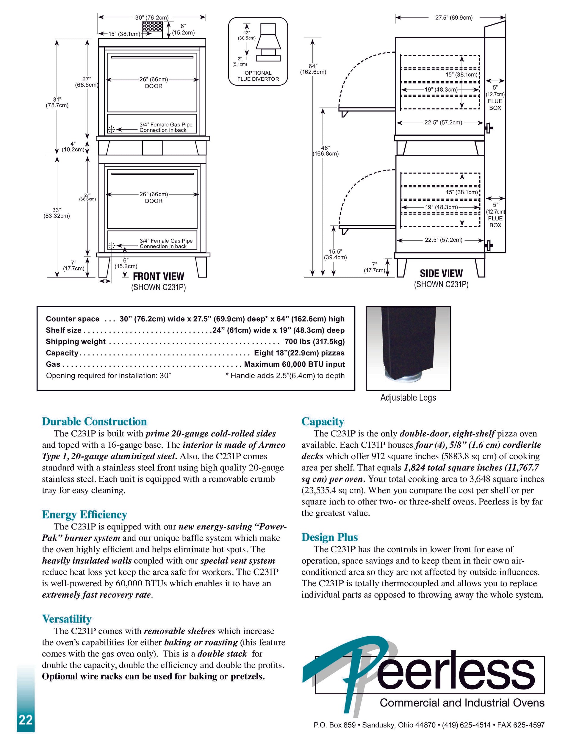 Pizza Oven, gas, double-stacked, (32) 9" or (8) 18" pizza capacity each, (4) 24"W x 19"D removable pizza stones per oven, 300°F - 650°F throttling thermostat, aluminized steel interior, stainless steel front, (2) 30,000 BTU, cETLus, ETL-Sanitation